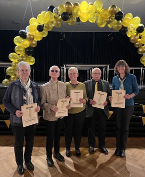 Im Laufe des Abends nahm Vanessa Wollny zusammen mit Sandra Welink die Vereinsehrung vor. Geehrt wurden Kevin- David Busch und Cornelia Muth für 25 Jahre Mitgliedschaft, Angelika Herden, Helga Kahlert und Renate Schön für 40 Jahre Mitgliedschaft, Karl- Heinrich Dörge für 50 Jahre Mitgliedschaft und Werner Herden für 60 Jahre Mitgliedschaft im Verein.